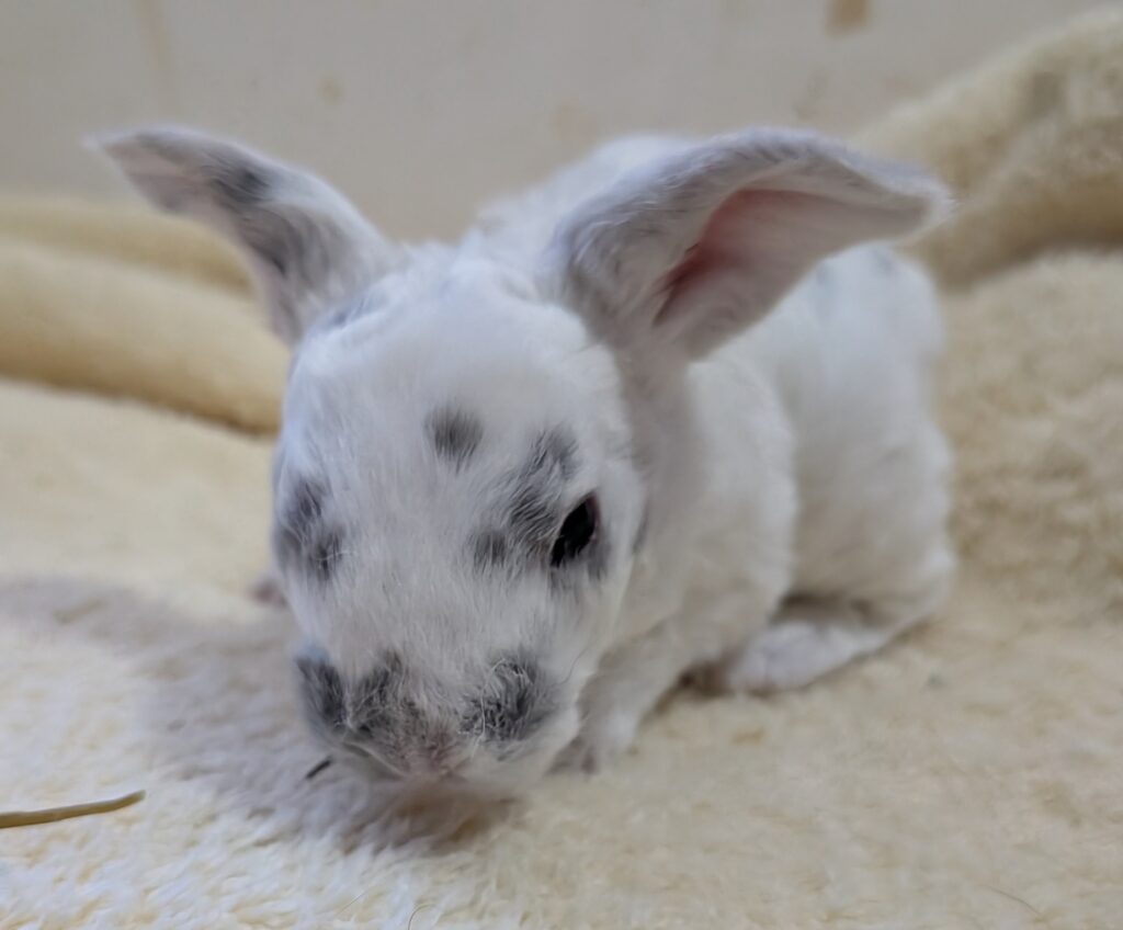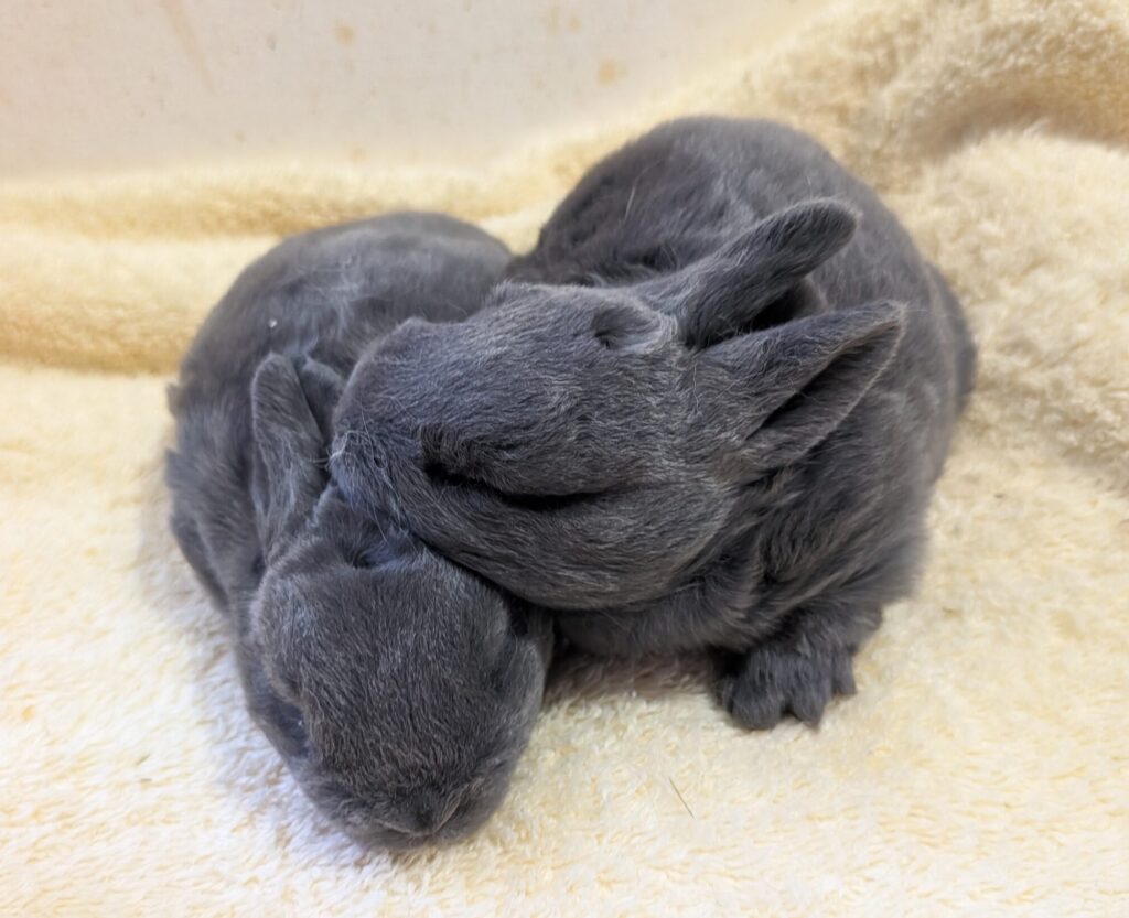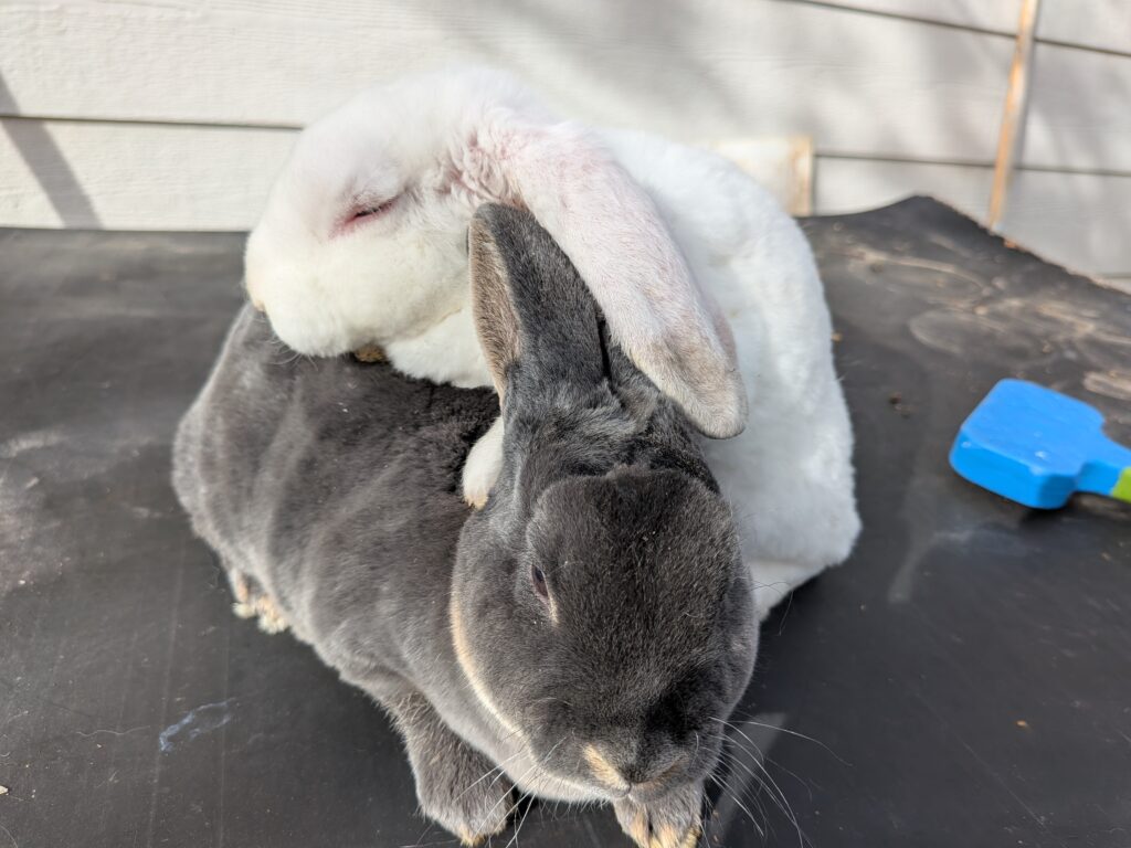 One blue-eyed white boy and one Blue Otter Mini Rex neutered buck.