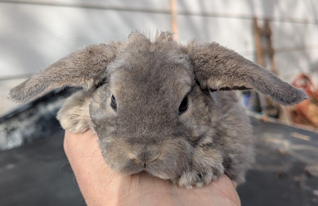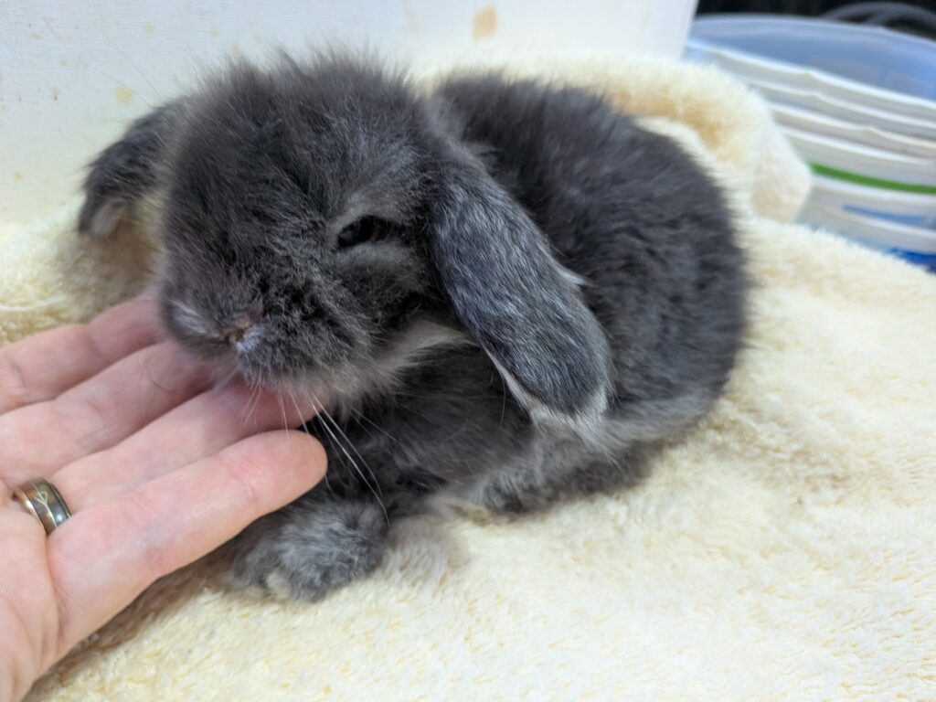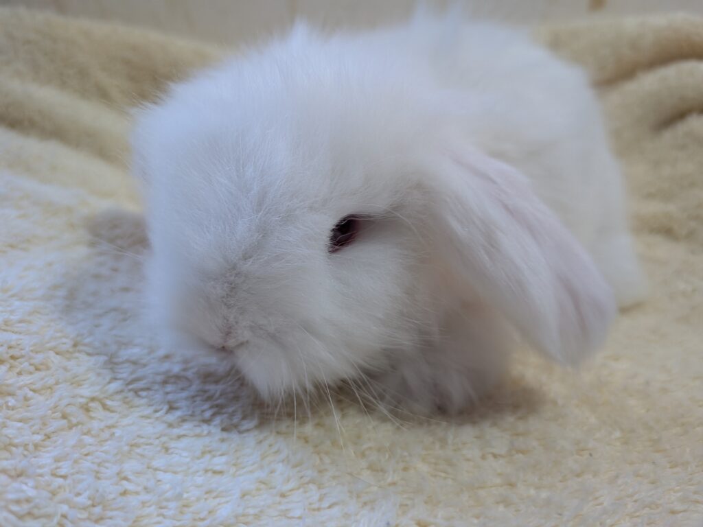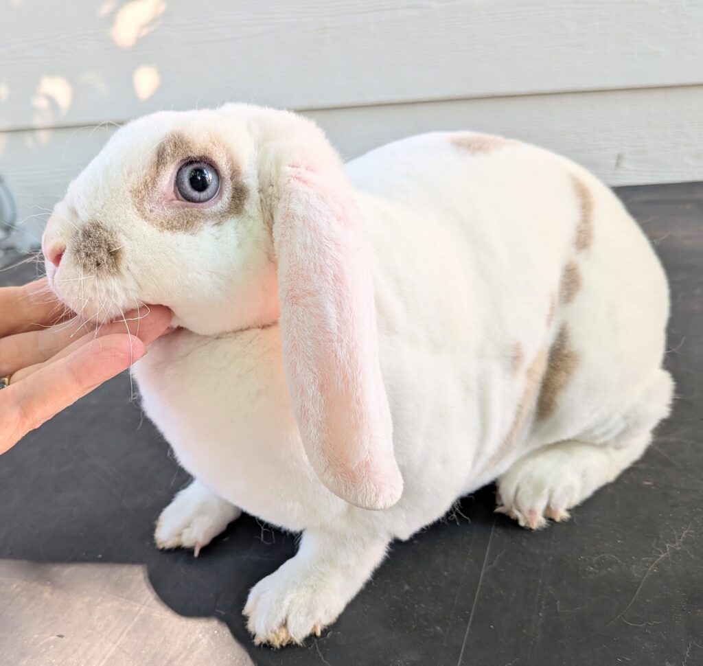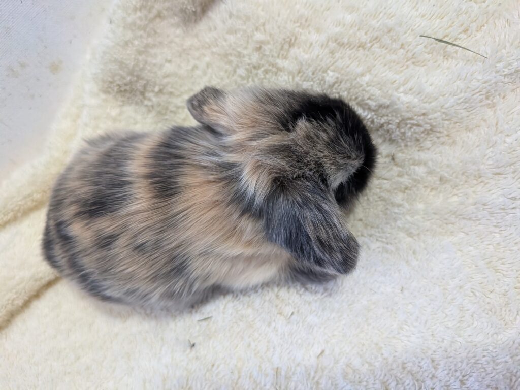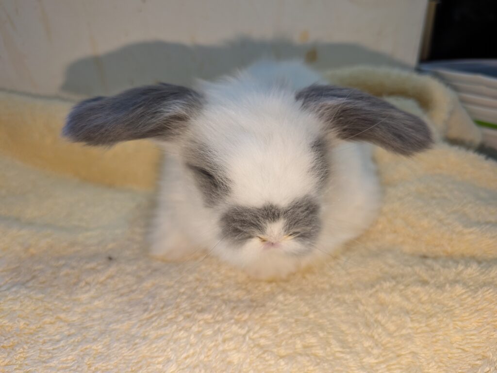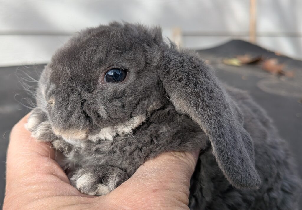 This sweet Plush Lop girl is 4 months old. She is just too small for breeding.
