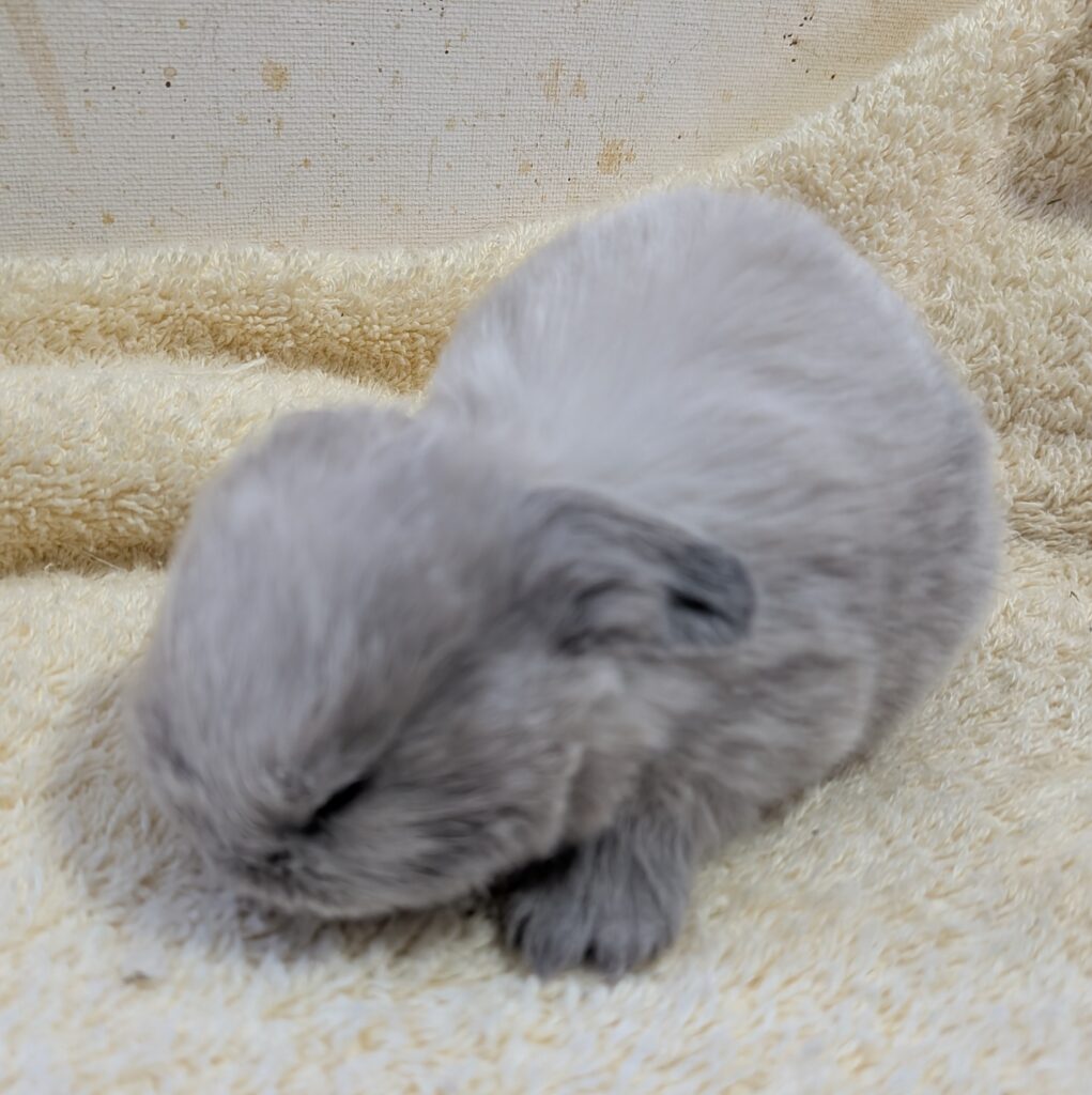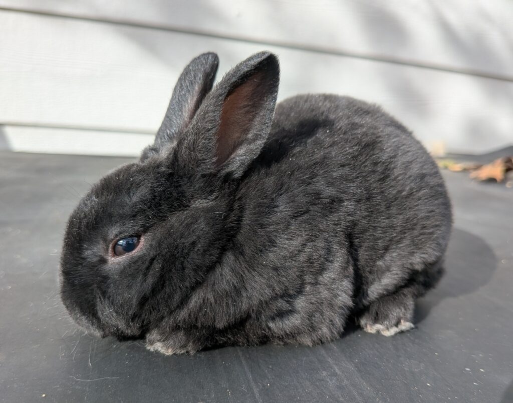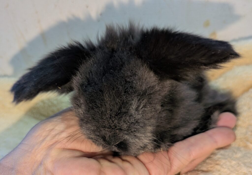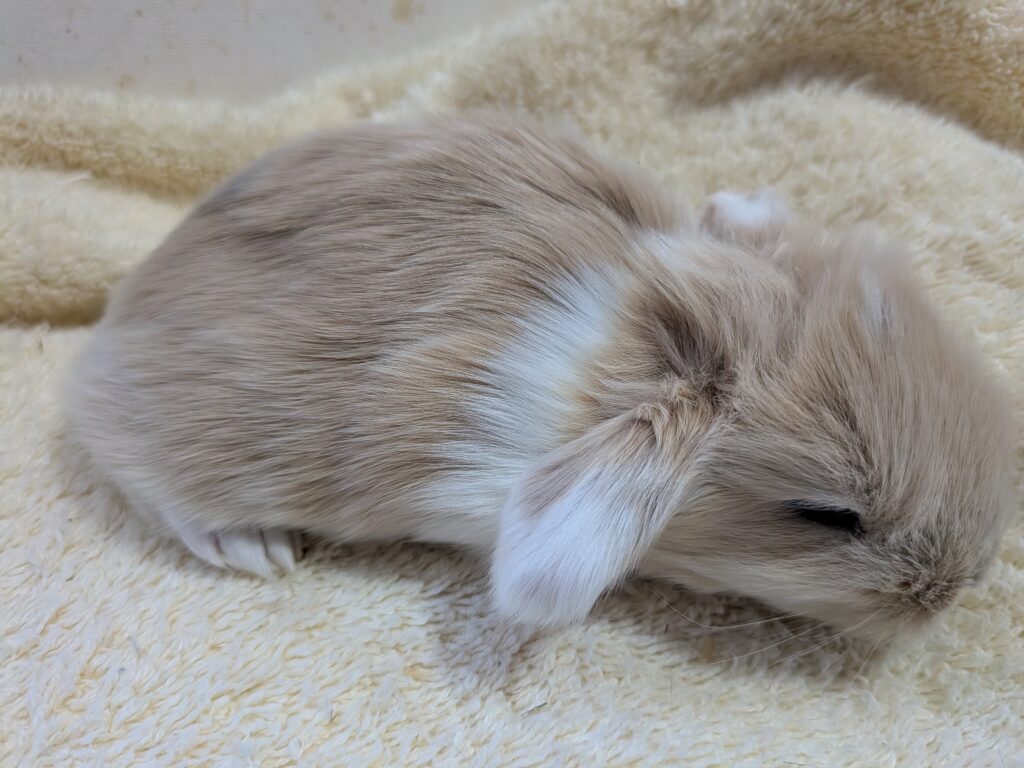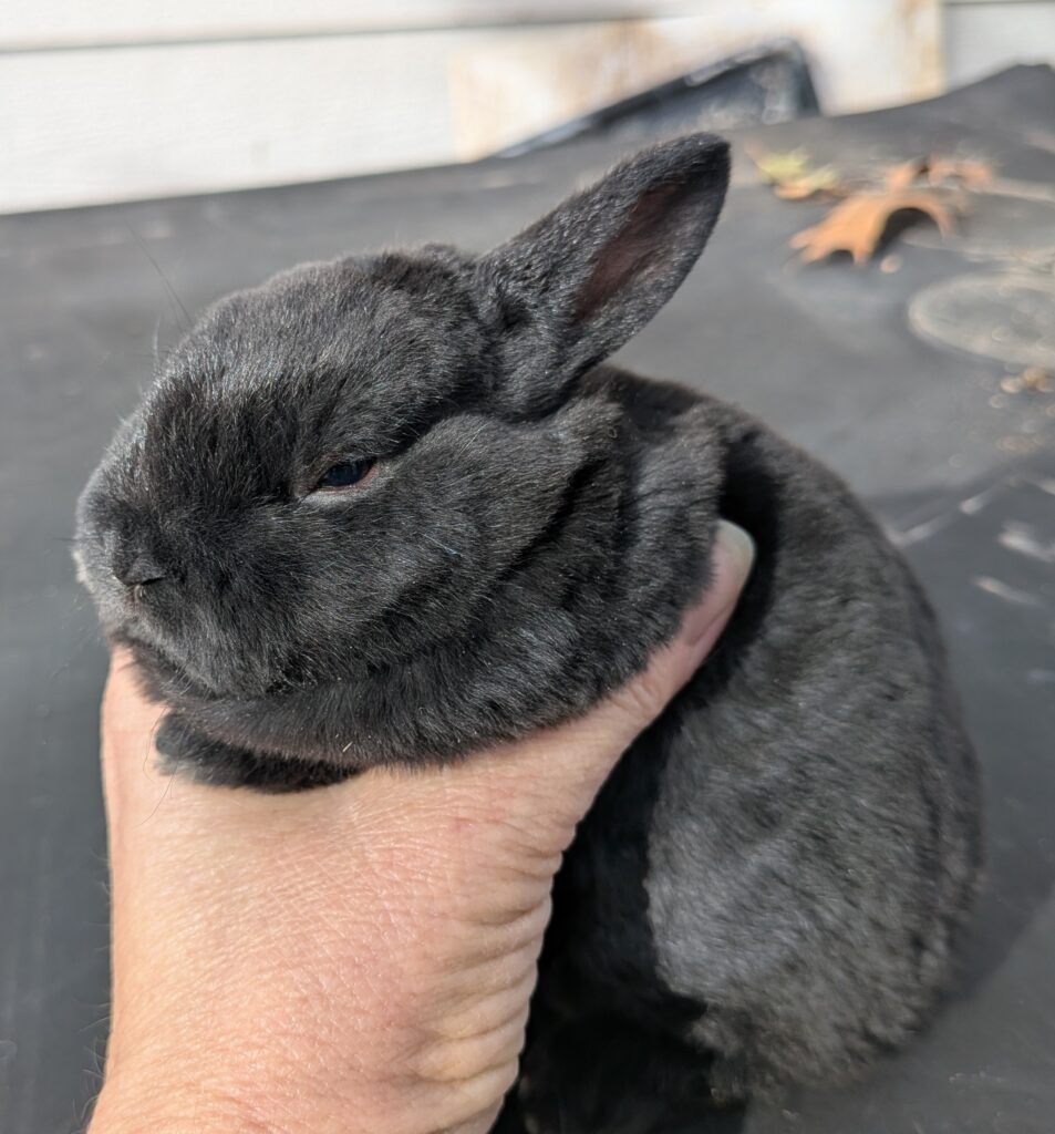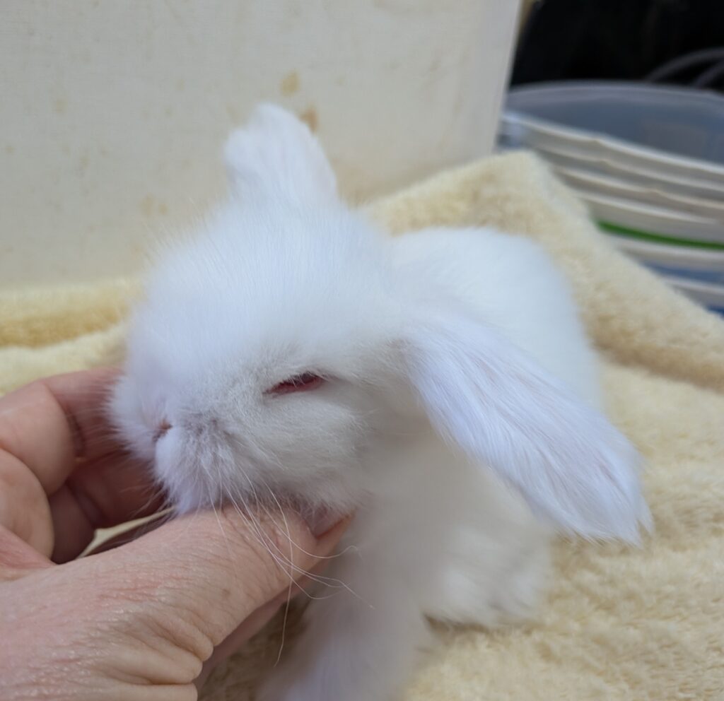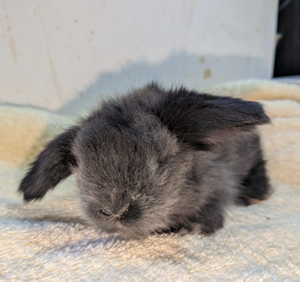 This sweet Plush Lop girl is 4 months old. She is just too small for breeding.