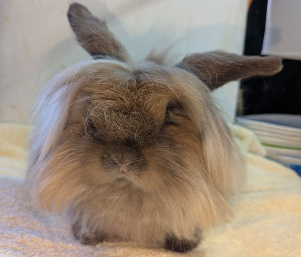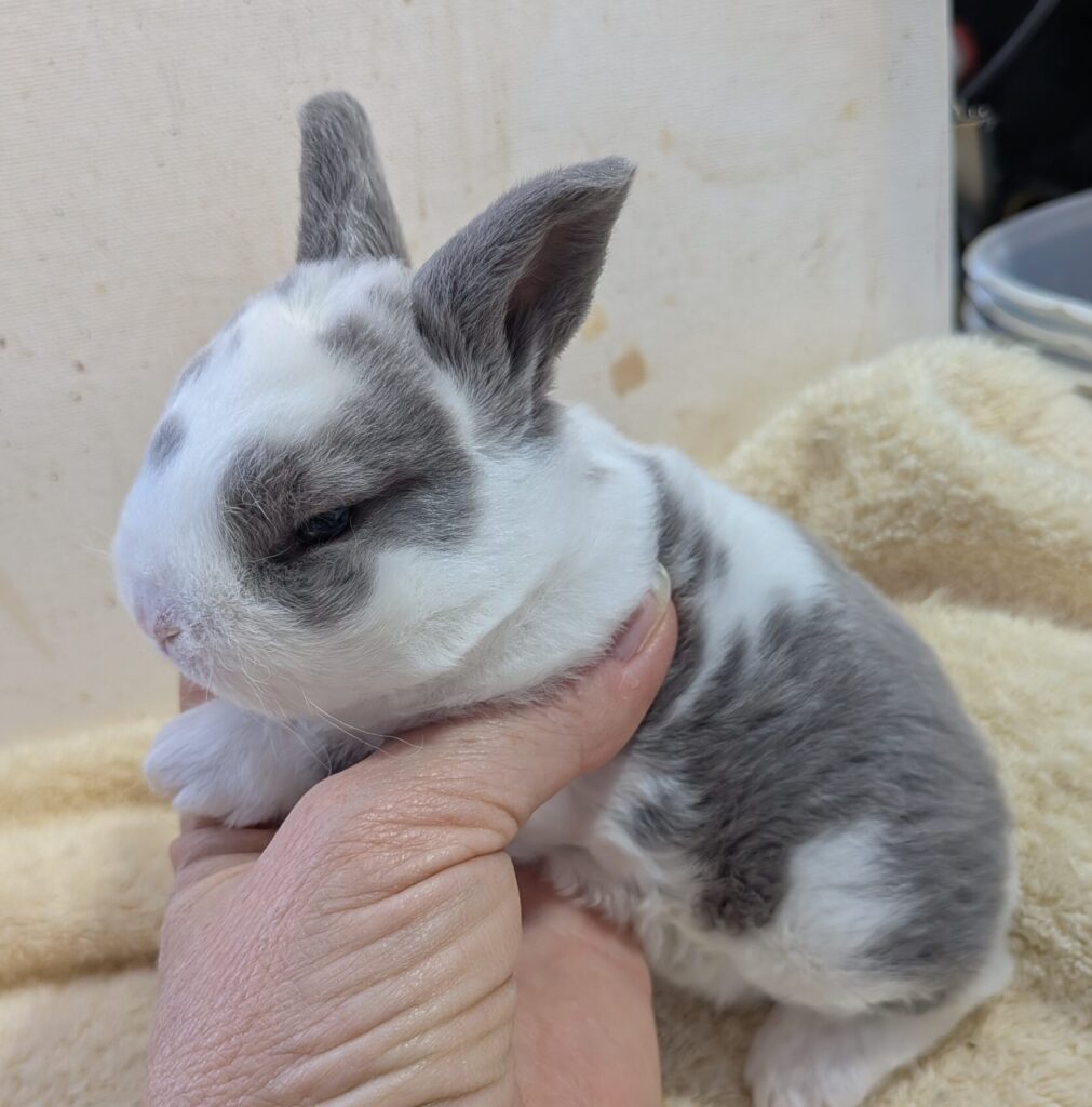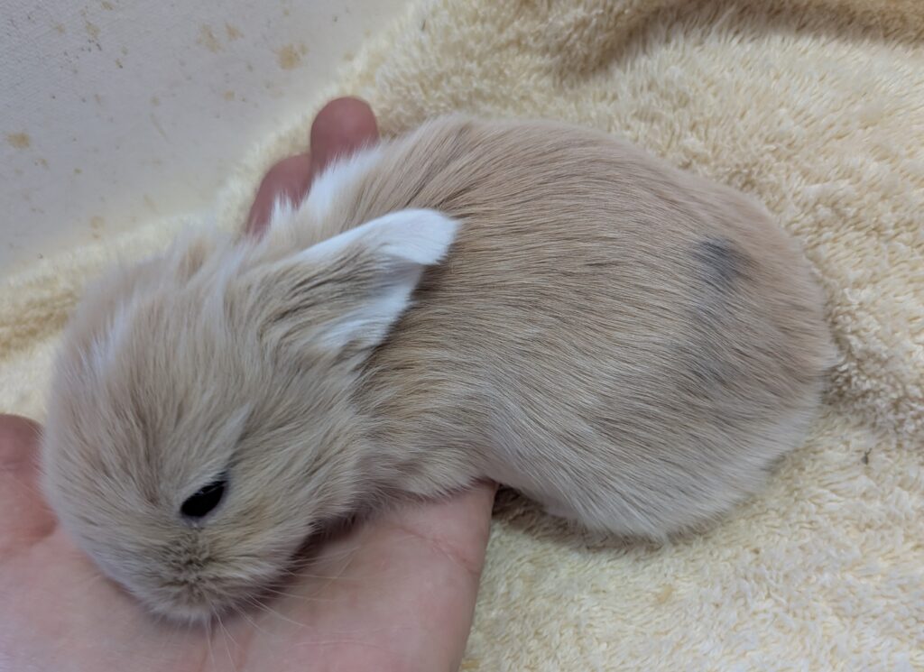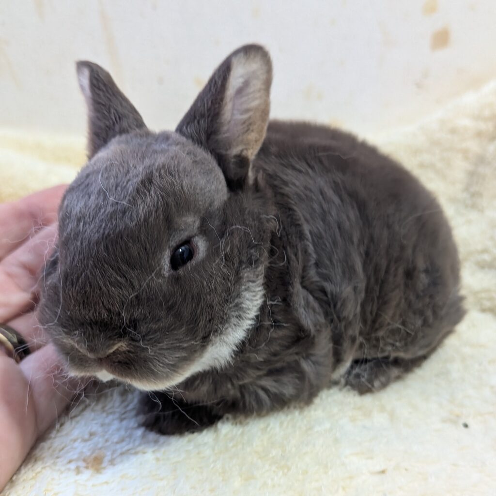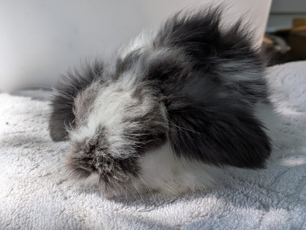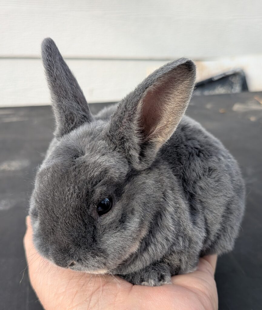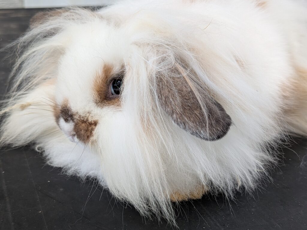 This sweet Plush Lop girl is 4 months old. She is just too small for breeding.