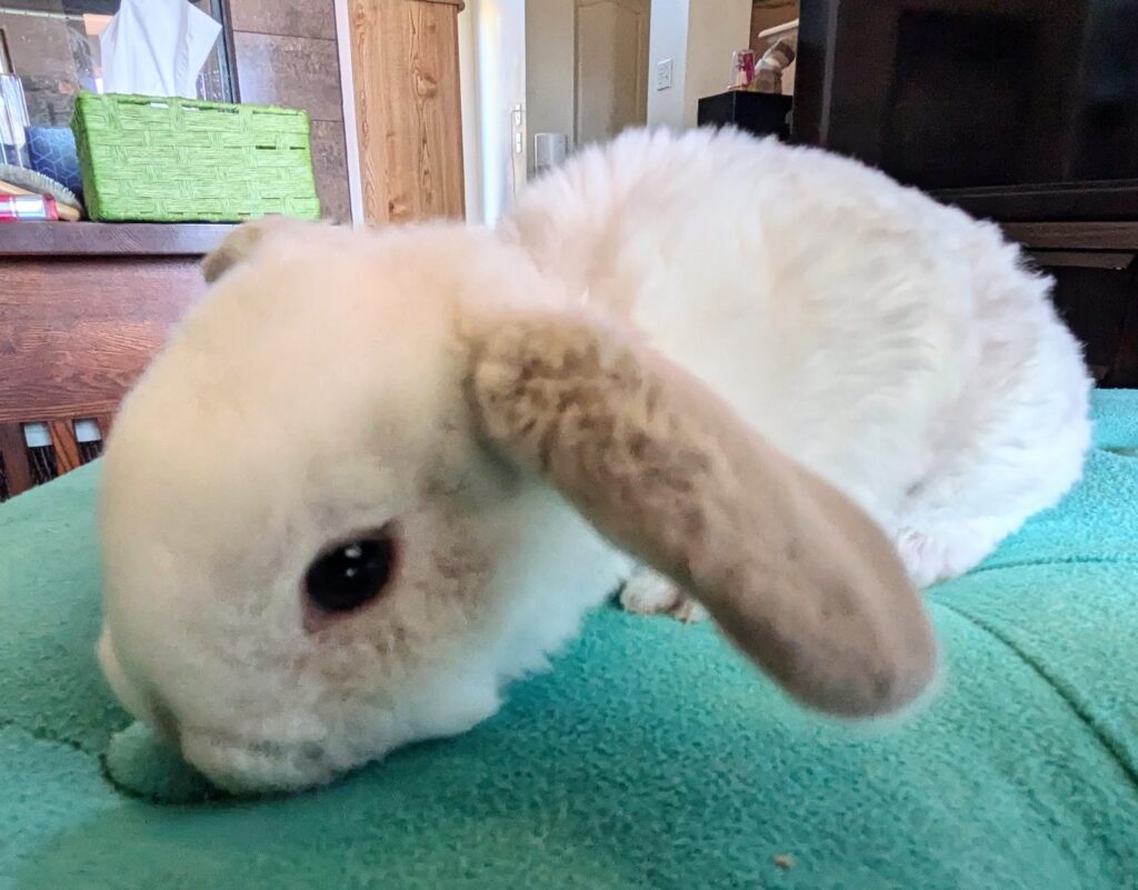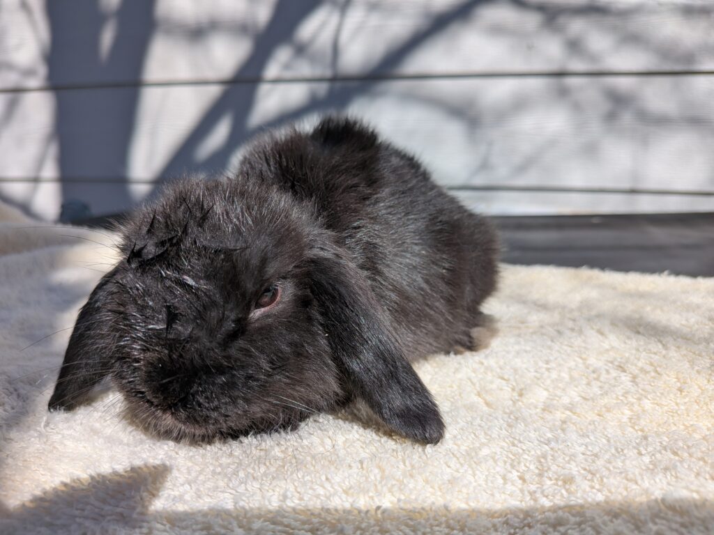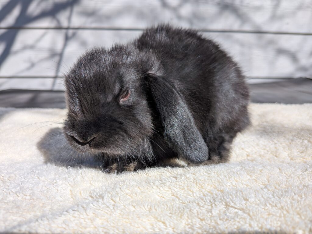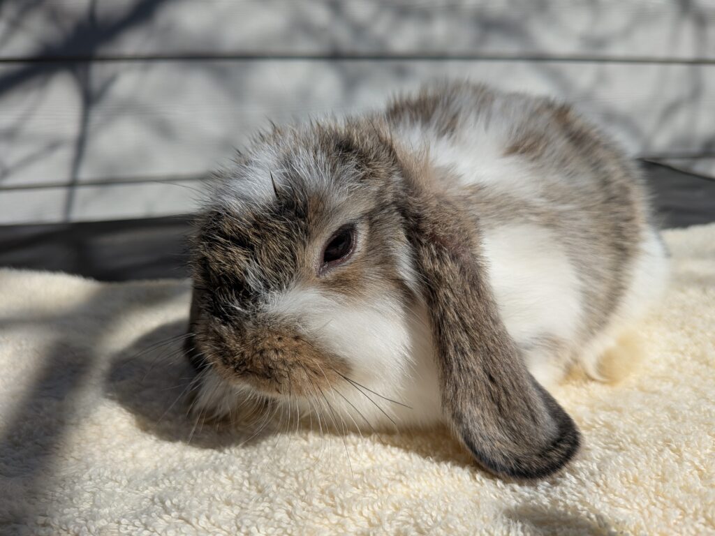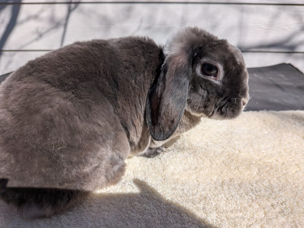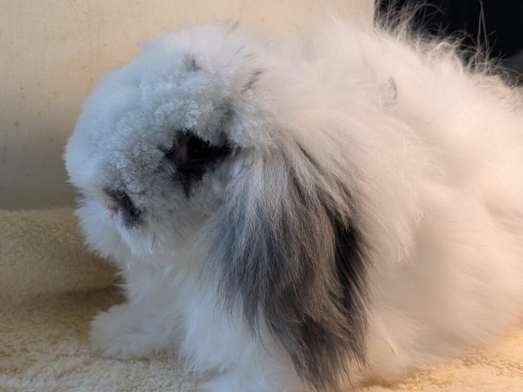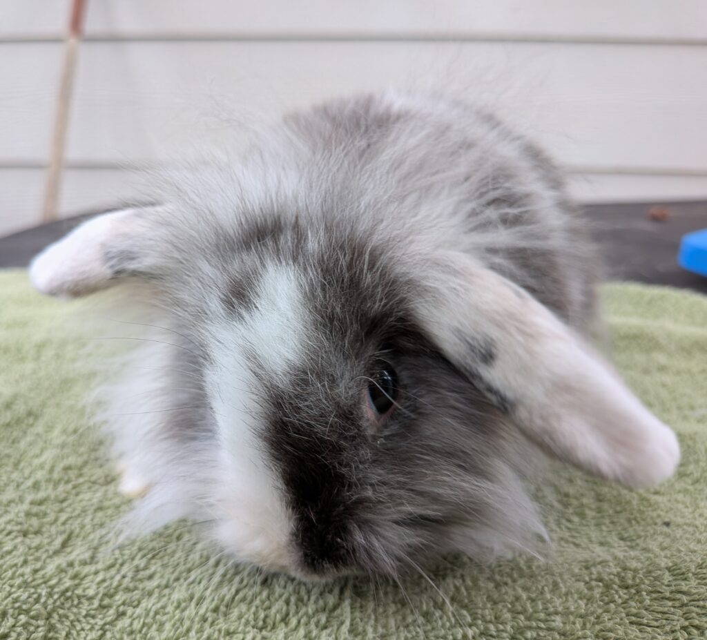 This blue silver neutered Martin Mini Plush Lop is 2 years old very sweet. he will make a good friend for another bunny and a good friend for you. re-homing $60